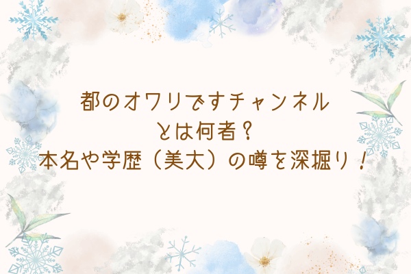 インフルエンサー 都のオワリですチャンネルとは何者?本名や学歴(美大)の噂を深掘り!